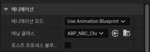 이후 캐릭터의 디테일탭에서 방금 만든 애니메이션 캐릭터블루프린트를 등록해준다.