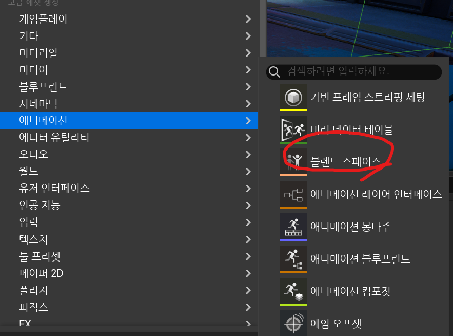 콘텐츠 드로어 우클릭 > 애니메이션 > 애니메이션 블루프린트을 클릭하여 애니메이션 블루프린트를 생성한다.
