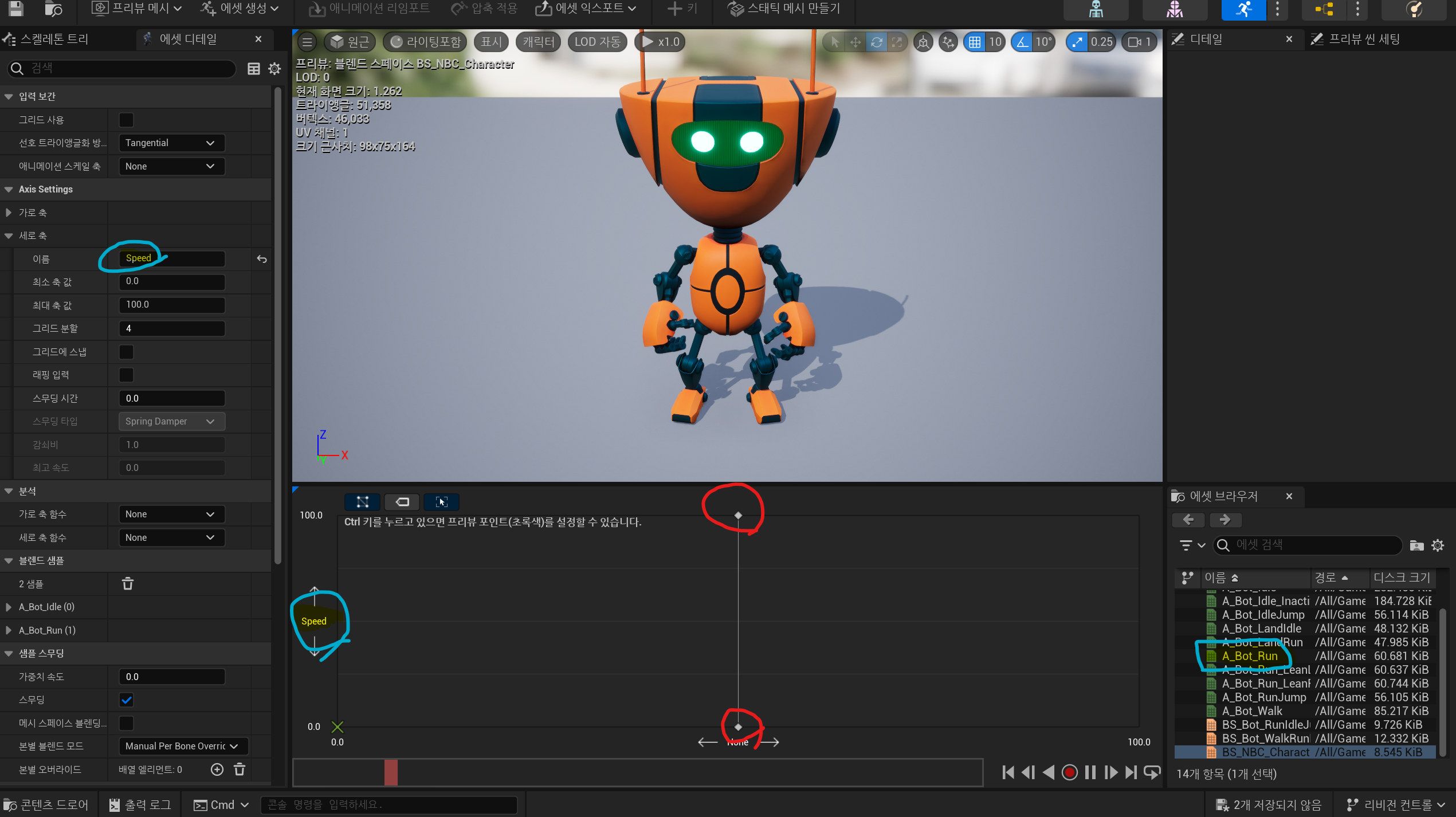 이후 Speed가 올라가면 달리기 모션을 진행하도록 에셋 브라우저에서 그래프에 저장한다.