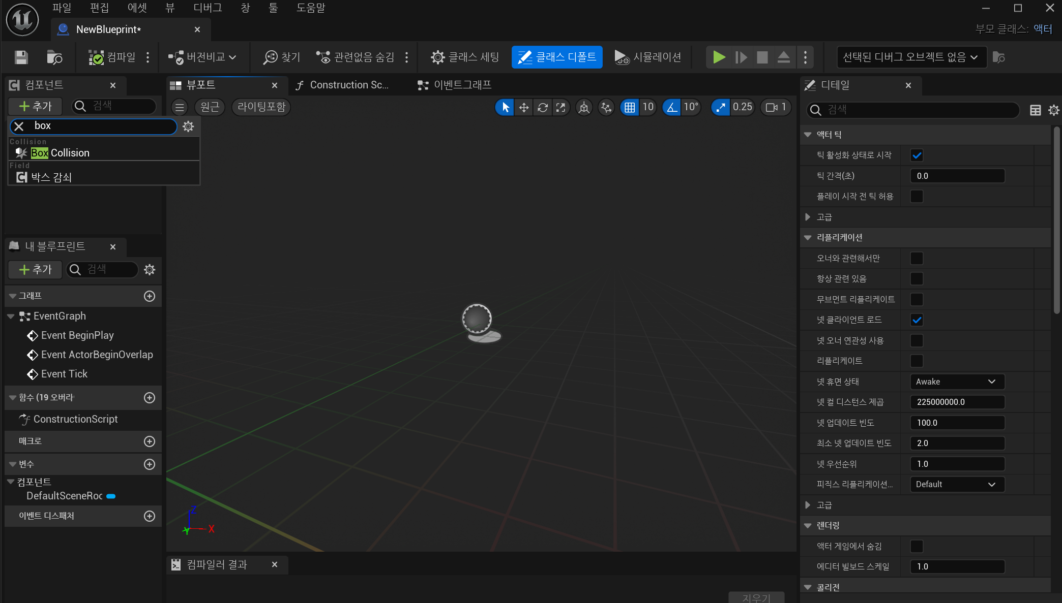 에셋 블루프린트를 생성해주고 추가 > Box Collision을 추가한 후 맵 뷰포트에 배치한다.