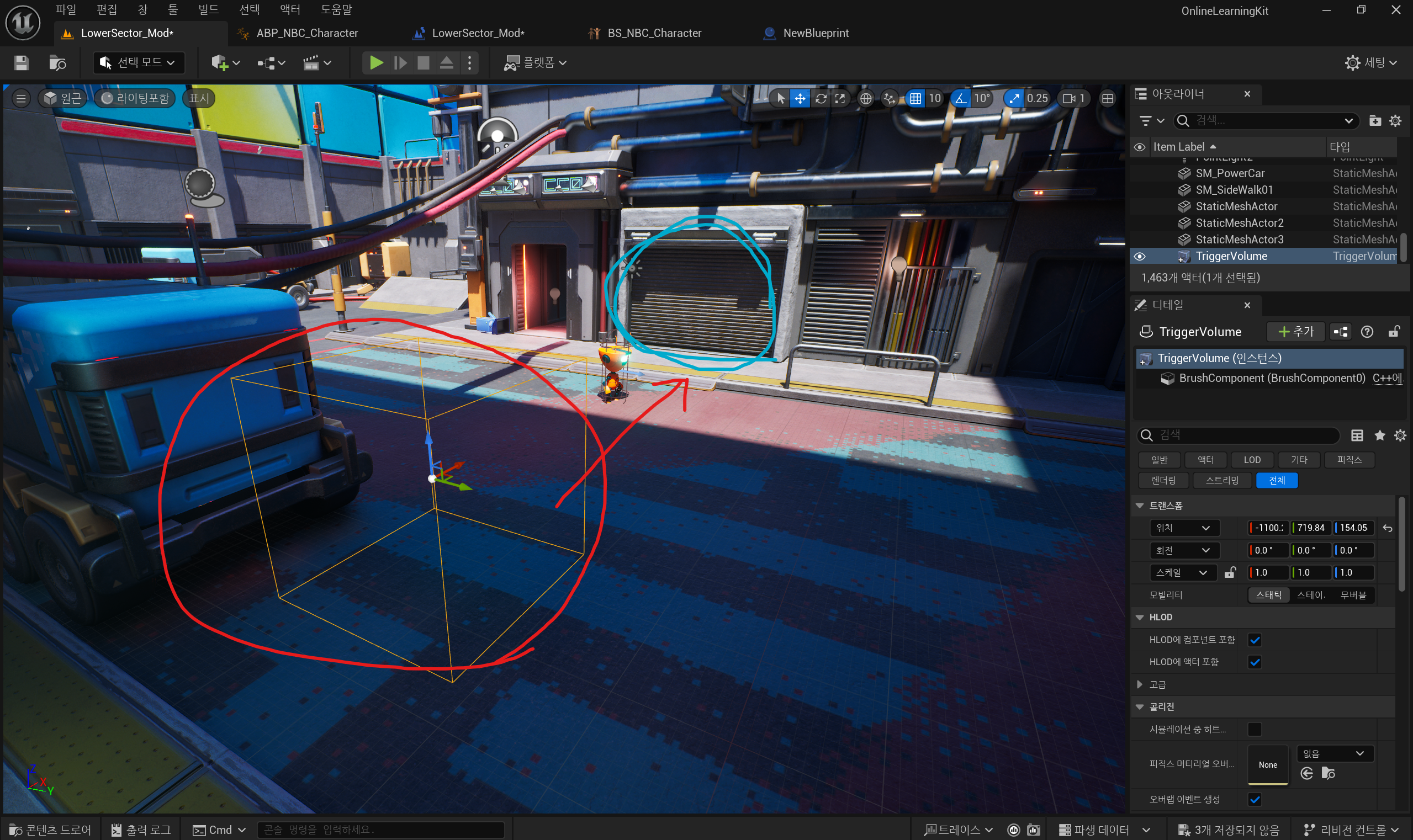 먼저 캐릭터와 오버랩을 하려면 Trigger Volume 이 필요하다.