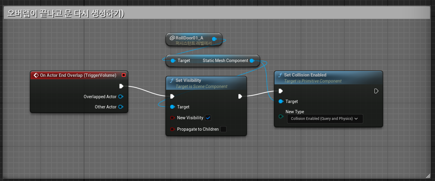 3. 아예 삭제되게 하려면 Destroy Actor 노드를 이용해서 RollDoor01_A를 삭제